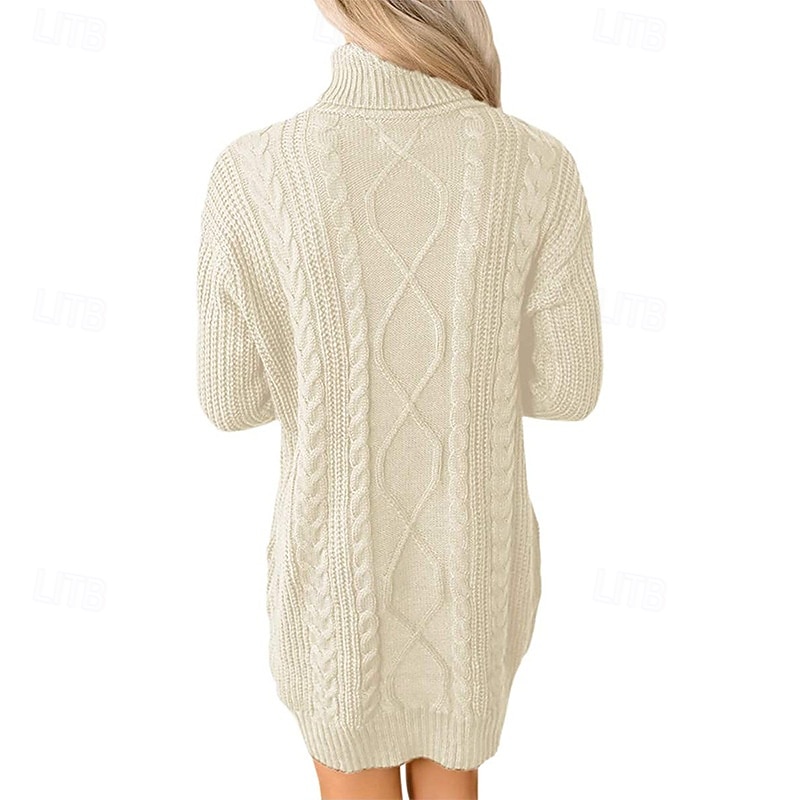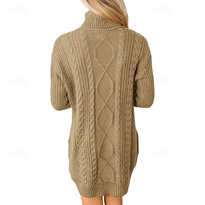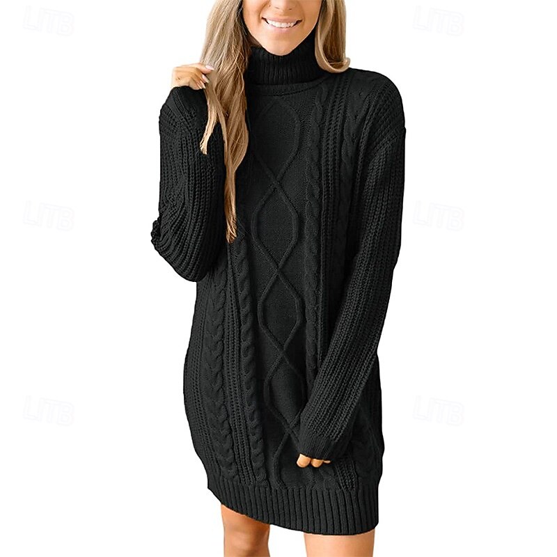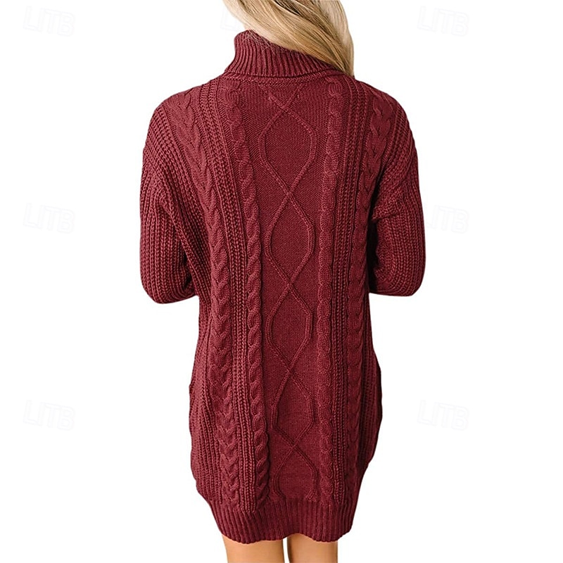 Women's Mini Dress Sweater Dress Fashion Modern Vacation Going out Regular Fit Plain Long Sleeve Turtleneck Black Wine Army Green Khaki Fall Winter 12