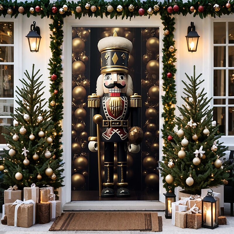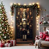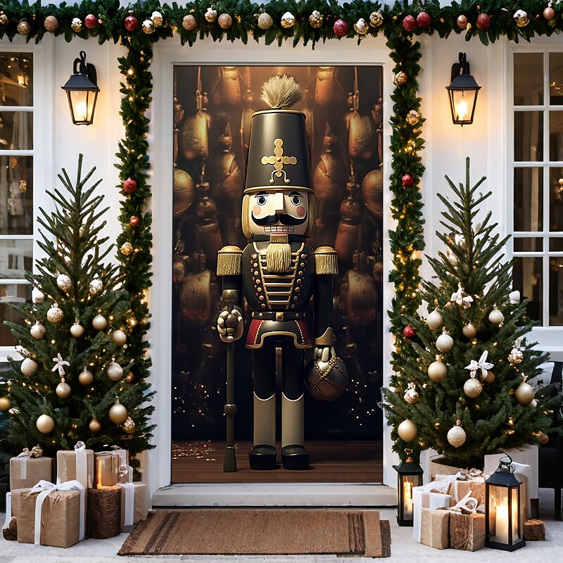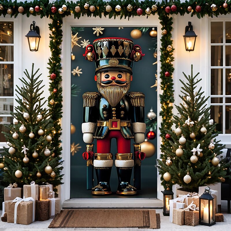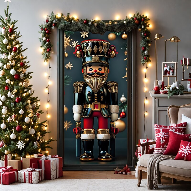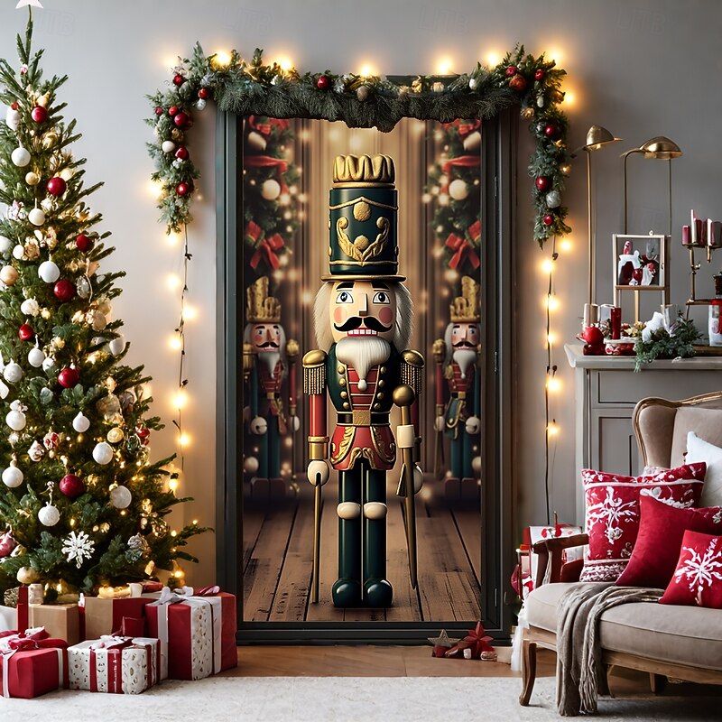 HOT ! Christmas Door Decorations Door Covers Xmas Nutcracker Door Tapestry Door Curtain Decoration Backdrop Door Banner for Front Door Farmhouse Holiday Party Decor Supplies Indoor/Outdoor