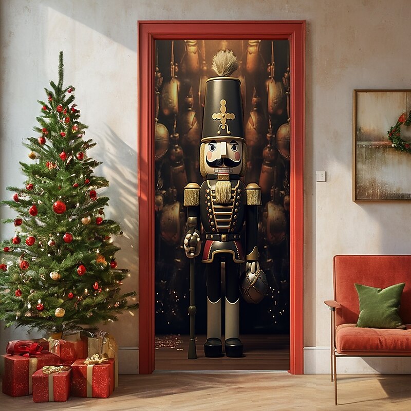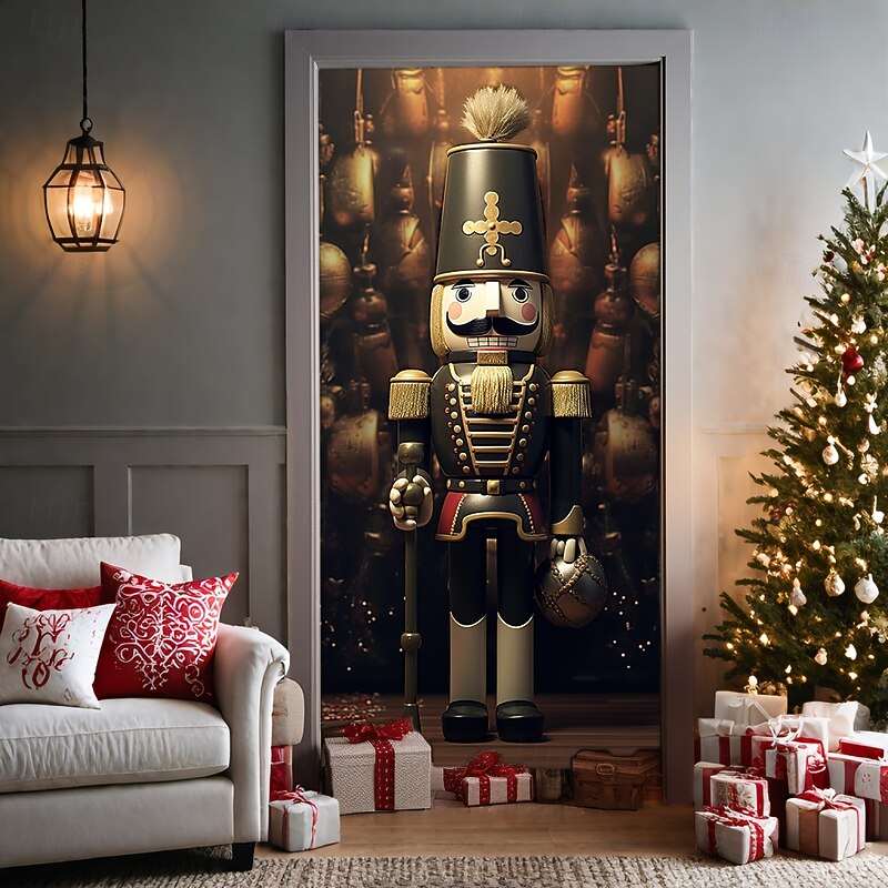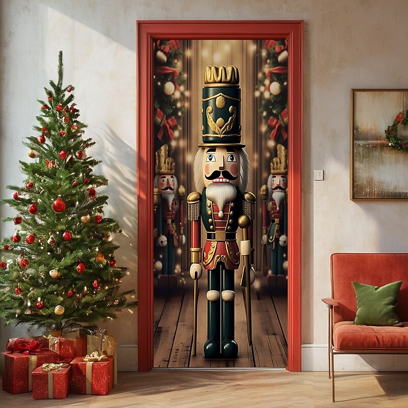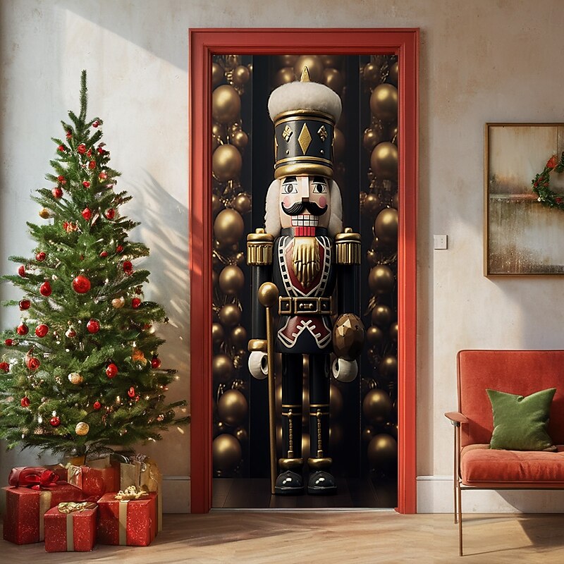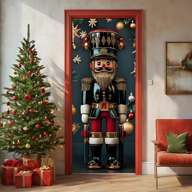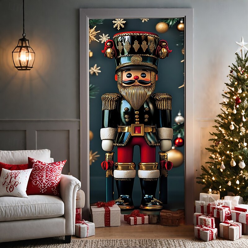 HOT ! Christmas Door Decorations Door Covers Xmas Nutcracker Door Tapestry Door Curtain Decoration Backdrop Door Banner for Front Door Farmhouse Holiday Party Decor Supplies Indoor/Outdoor