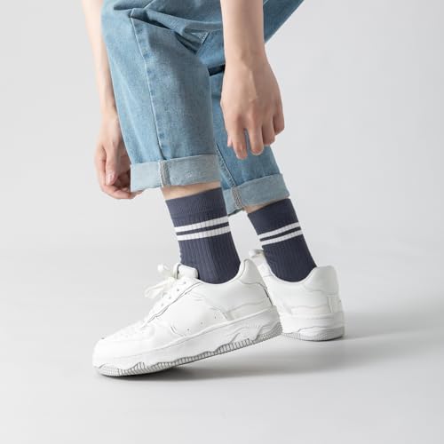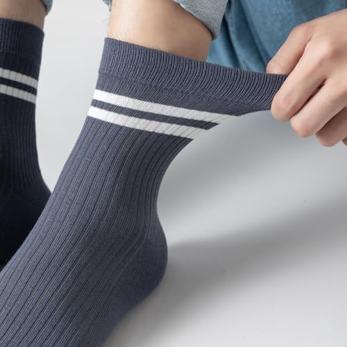 6 Pairs Mens Striped Crew Socks, Casual Cotton Socks Breathable Soft Calf Socks for Boys Mens Size 7-11 5