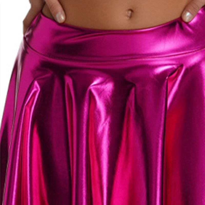 Retro Vintage 1980s Shiny Metallic Skirt Disco Pleated Solid Color Fancy Dress Women's Carnival Performance Prom Club Adults' Skirt 4