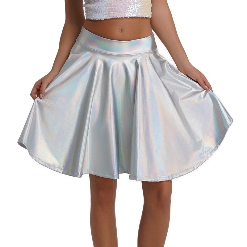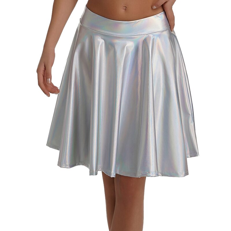 Retro Vintage 1980s Shiny Metallic Skirt Disco Pleated Solid Color Fancy Dress Women's Carnival Performance Prom Club Adults' Skirt 11