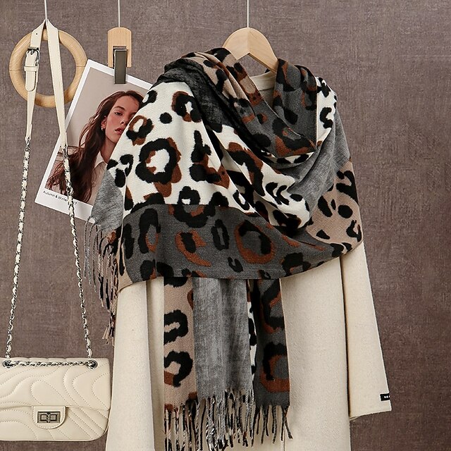 More information about Women's Rectangle Scarf Infinity Scarf Street Daily Holiday Grey Camel Brown Scarf Leopard