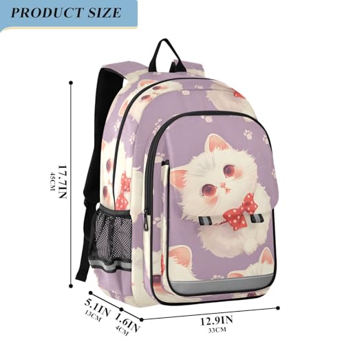 senya Cat with Red Bow Backpack Water-Resistant Bag Lightweight Bookbags with Reflective Strip 5