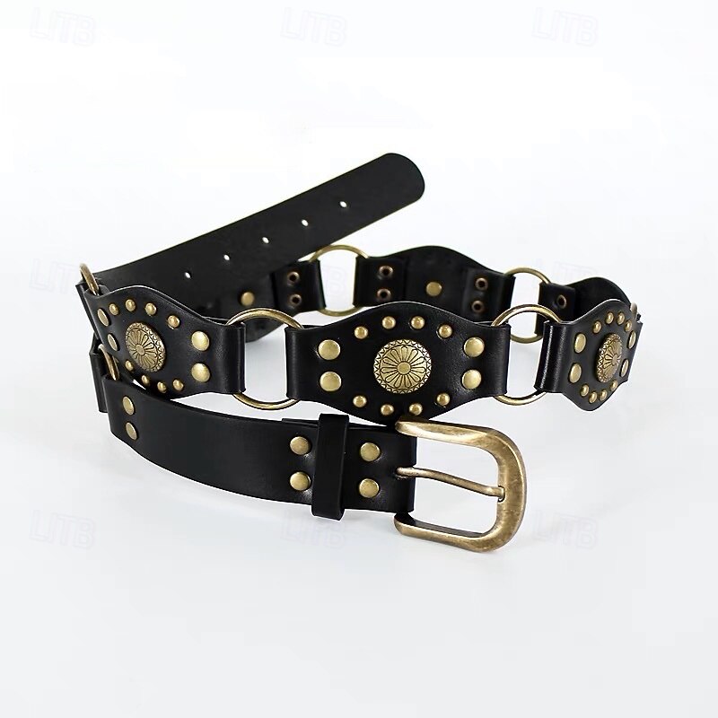 Women's Belt PU Black Brown Waist Belt Street Date Floral 13