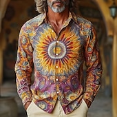 More information about Men's Sunflower Floral Print Ethnic Shirt Button Up Shirt Long Sleeve Vintage Retro Outdoor Casual Holiday Spring Fall Turndown 3D Print Collared Shirts Orange