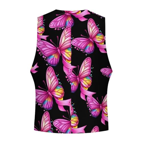 Rainbow Ribbon Breast Cancer Awareness Men's Suit Vests Business Formal Dress Vest V-Neck Waistcoat for Wedding Casual 2