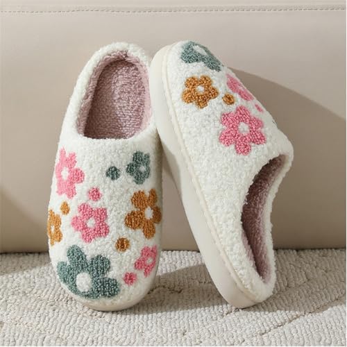 Womens Mens Cute Flowers Slippers Retro Memory Foam Cartoon Comfort Slippers Fuzzy Warm Plush Couple House Shoes 5