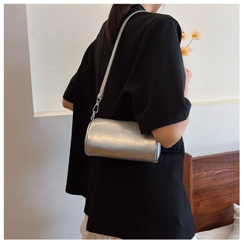 HOT ! Trendy Silver Cylinder Bag for Women, Premium Soft Pillow Purse, Versatile Shoulder/Crossbody Bag Stylish Design