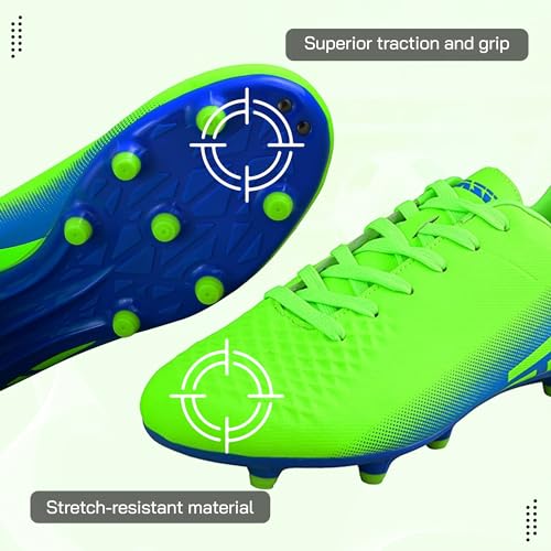 • NON-SLIP TPU STUDS FOR SAFETY & TRACTION: Stay worry-free! Our cleats feature a non-slip TPU outsole that gives excellent traction on grass and turf, minimizing slips and falls during practice or play. Parents trust Vizari for stable, safe footing.