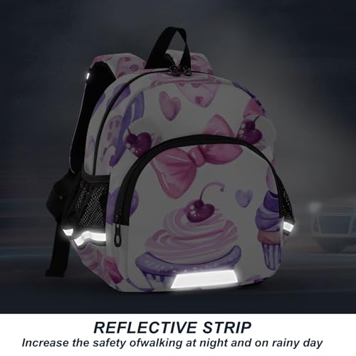 Kid's Backpack for Boys & Girls Toddler Bag Heart Candy and Cupcakes Backpack with Safety Leash 1