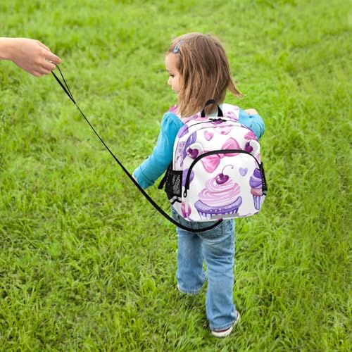 Kid's Backpack for Boys & Girls Toddler Bag Heart Candy and Cupcakes Backpack with Safety Leash 4