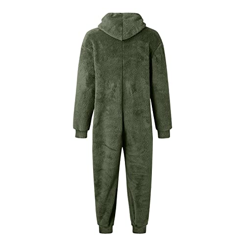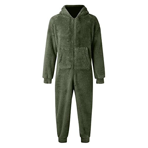 HOT ! Mens Thermal Sherpa Fleece Onesies Pajamas Long Sleeve Zipper Jumpsuits with Hoodie Plain Fluffy Hooded Sleepwear