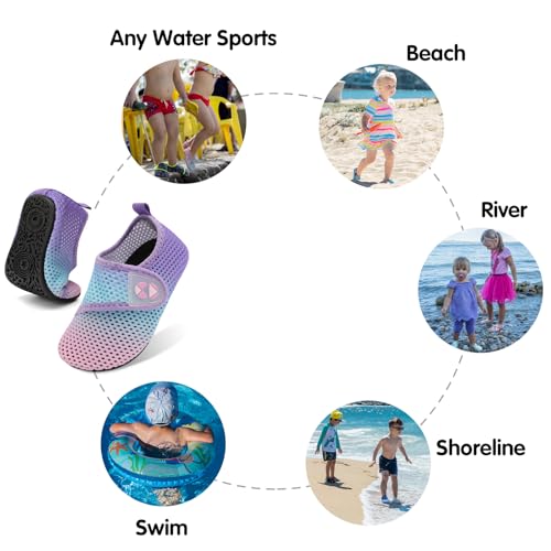 • Quick Dry:these kids water shoes are made of breathable and stretchy mesh,extremely drainage capacity,quick drying and breathable to wear whatever your kids are playing in the beach,swim pool or any outdoor water sports