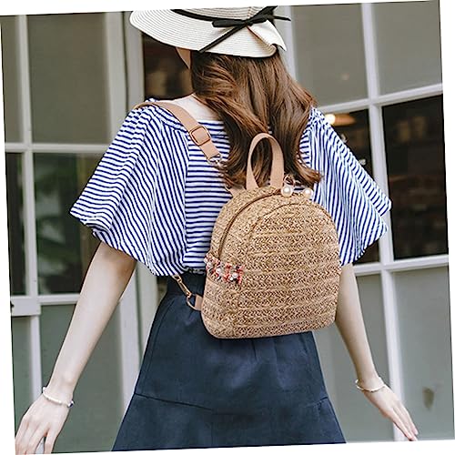 SAFIGLE 1pc Woven Pearl Mini Backpack for Women Stylish Outdoor Travel Bag Comfortable Durable for Shopping Picnics and Everyday Use Deep 4
