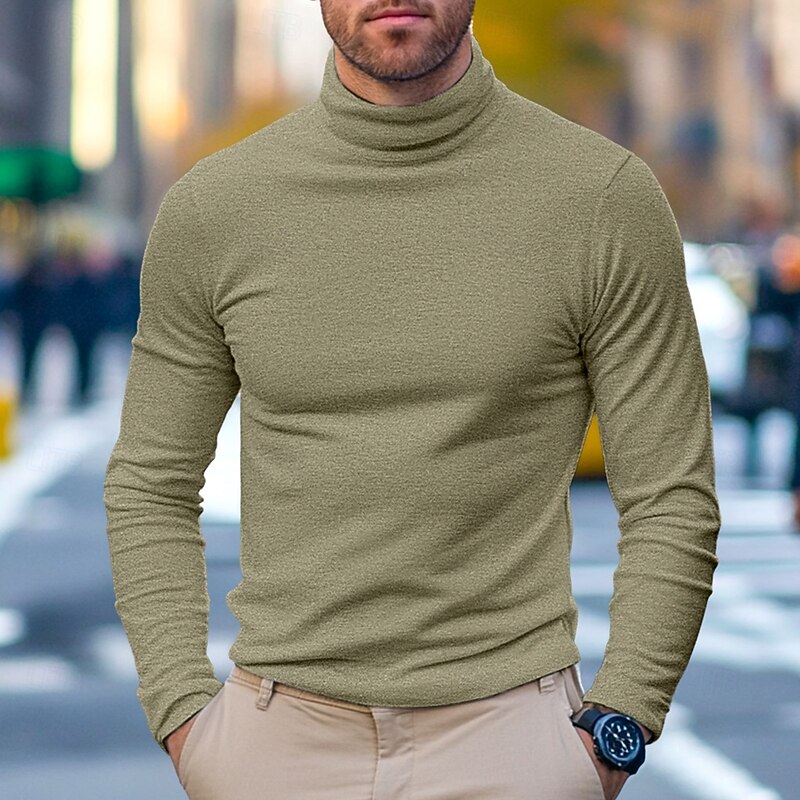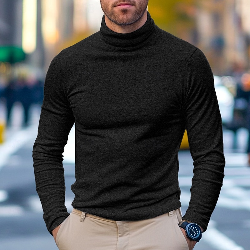 HOT ! Men's 65% Cotton Mock Turtleneck Tee Top Long Sleeve Shirt Solid Color Turtleneck Formal Outdoor Long Sleeve High Neck Clothing Apparel Daily Casual Street Style