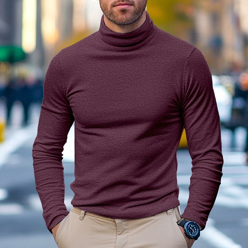 Men's 65% Cotton Mock Turtleneck Tee Top Long Sleeve Shirt Solid Color Turtleneck Formal Outdoor Long Sleeve High Neck Clothing Apparel Daily Casual Street Style 15