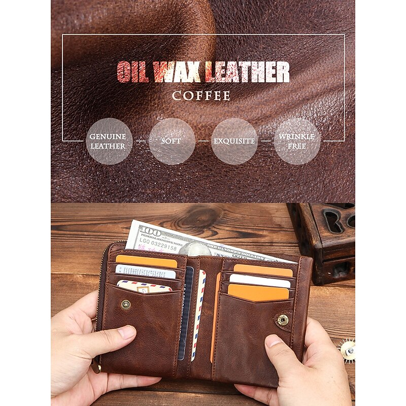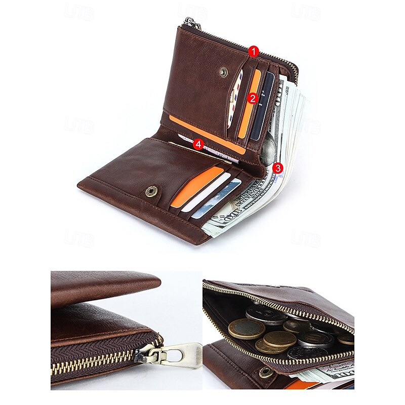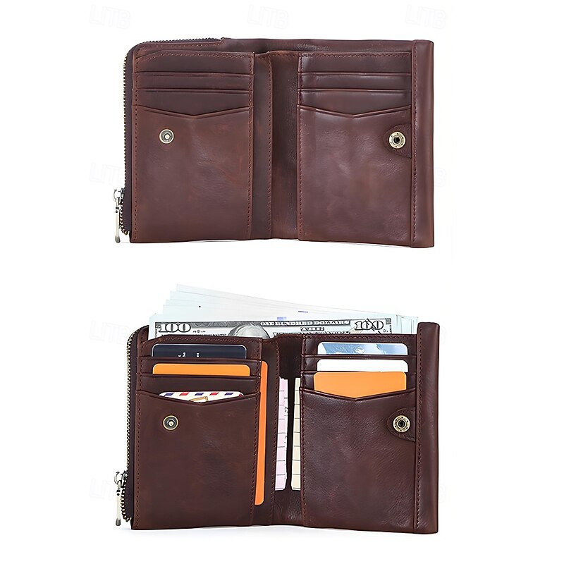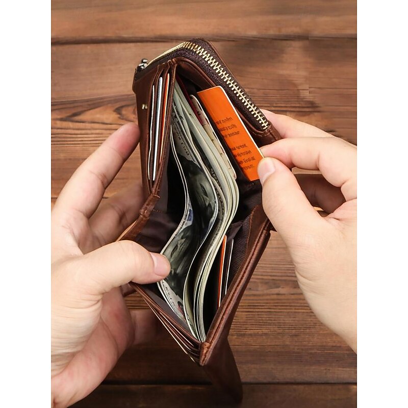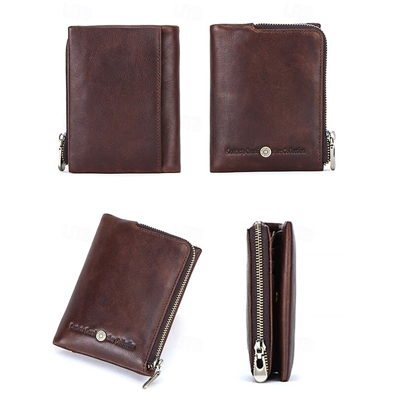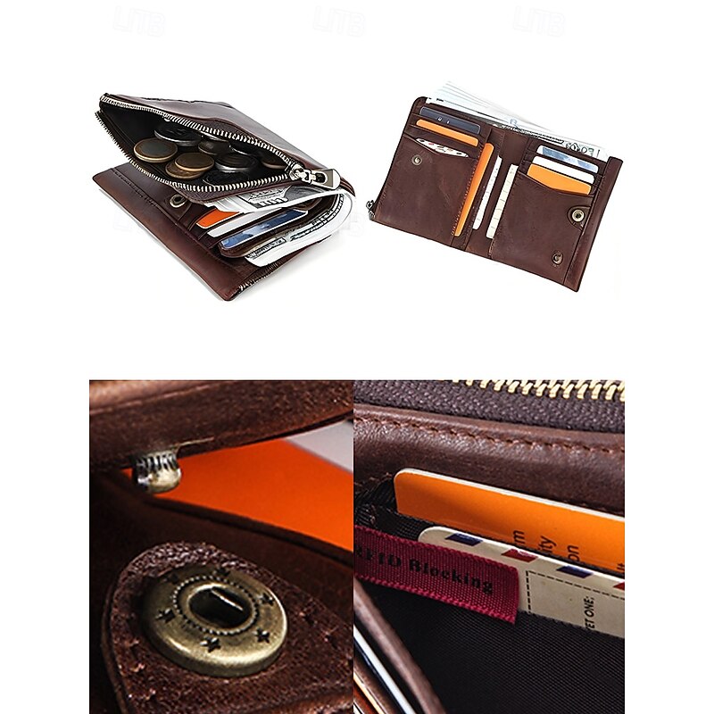 $26.99 - Men's RFID Blocking Cowhide Leather Bifold Wallet with Zipper Coin Pocket – Vintage Slim Card Holder for Daily and Business Use 2025. Shop for cheap Wallets online? Buy at lightinthebox.com on sale today!