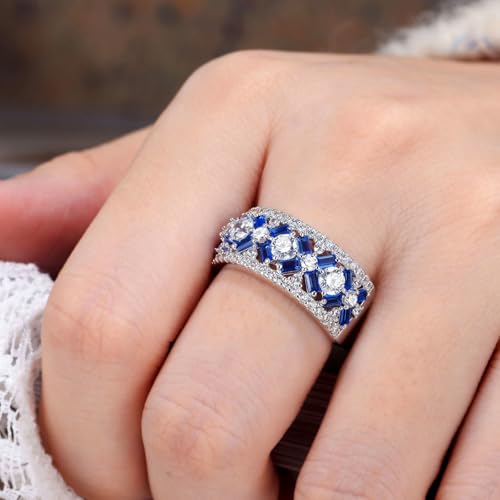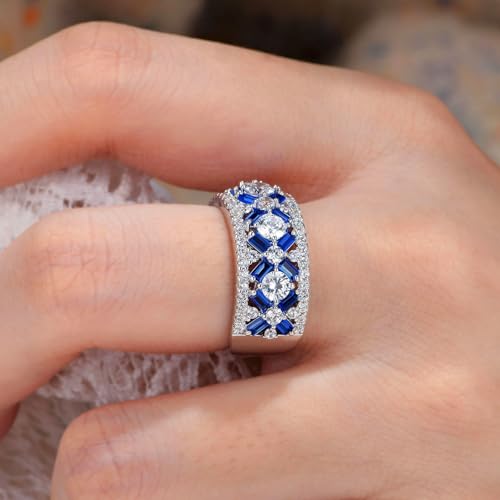 • This wide band rings for women features baguette cut vibrant dark blue sapphire and high grade round cut cubic zirconia,can be worn as standalone fashion rings or as everyday jewelry. The wide band makes for an attention grabbing, brings you both elegance and dainty.