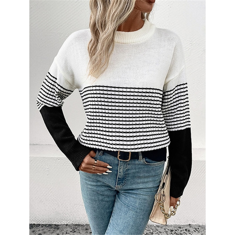 More information about Women's Sweater Casual Soft Striped Ribbed Crew Neck Knitted Long Sleeve Regular Tops Knit Outdoor Daily Weekend Black Fall Winter