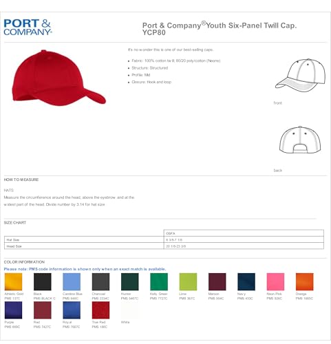 HOT ! Port & Company Boys' Six Panel Twill Cap YCP80