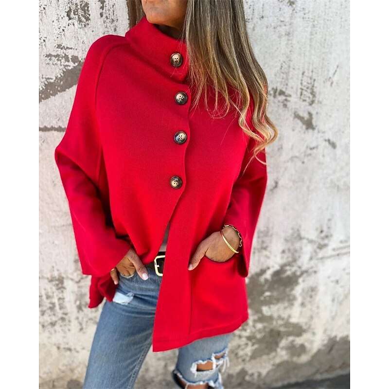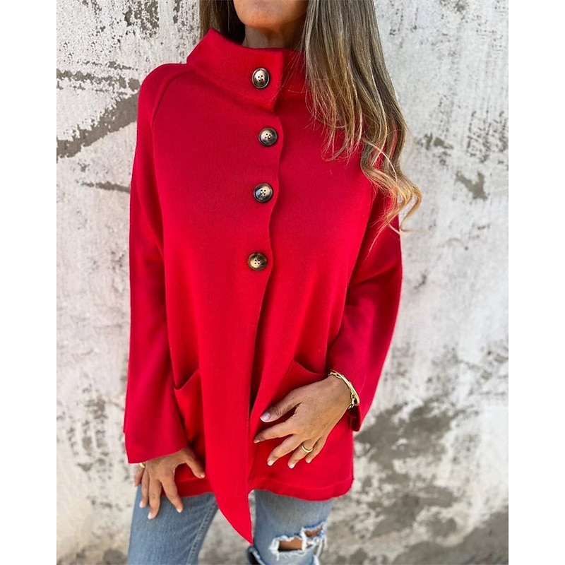 More information about Women's Coat Casual Jacket Comfortable Pocket Buttons Fashion Modern Casual Plain Going out Weekend Single Breasted Regular Stand Collar Regular Fit Long Sleeve Outerwear Black Red Brown Fall Winter