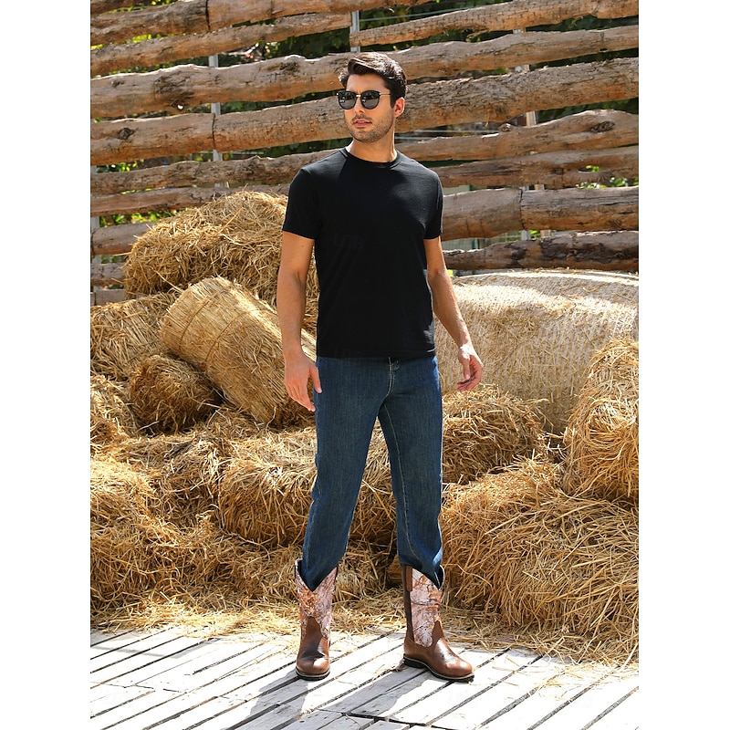 More information about Men's Boots Cowboy Boots Embroidery Retro Handmade Shoes Walking Sporty Casual Outdoor PU Leather Comfortable Slip Resistant Mid-Calf Boots Loafer Yellow-Brown Brown Summer Fall Winter