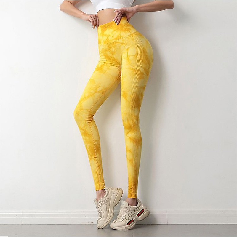 More information about Women's Yoga Pants Scrunch Butt Seamless Butt Lift Tummy Control High Waist Gym Workout Running Fitness Tights Leggings Bottoms Tie Dye Yellow Pink Blue Spandex Fall Winter Sports Activewear Stretchy