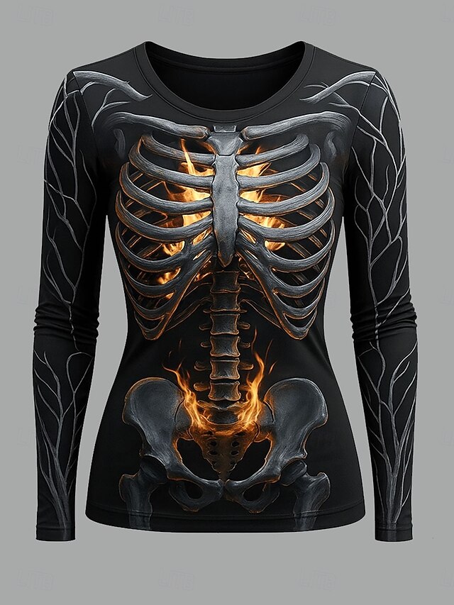 More information about Halloween Women's T Shirt Skulls Graphic Skeleton Vintage Fashion Stylish Long Sleeve Crew Neck Regular Tops Daily Weekend Print Yellow Pink Blue Green Spring Fall Winter