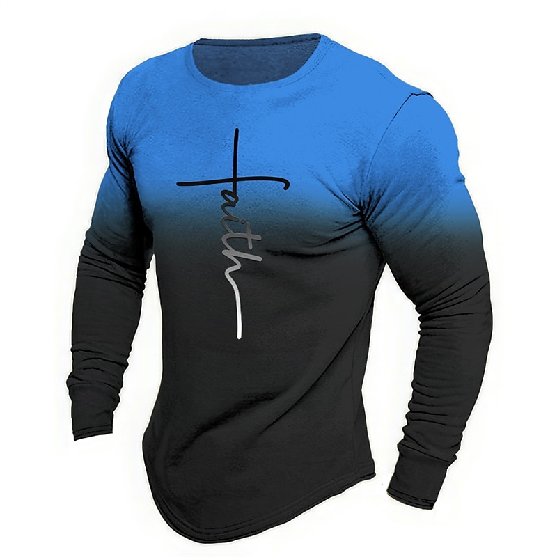 More information about Men's Graphic Letter Faith T Shirt Long Sleeve T shirt 3D Print Crew Neck Shirt Fashion Designer Casual Sports Outdoor Holiday Going out Blue Orange Brown Spring & Fall Clothing Apparel S M L XL 2XL