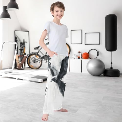 HOT ! Boy's Pants Eagle Black Jogger Pants Elastic Waist Long Bottoms Trousers with Pockets 6-14 Years
