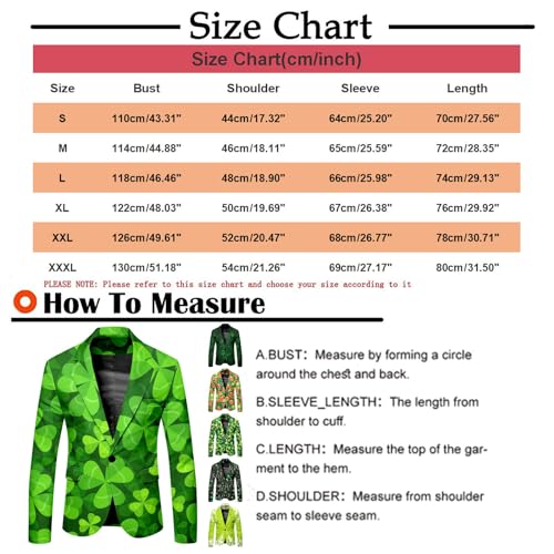 Mens St Patricks Day Blazer Button Down Shamrock Lucky Irish Jacket Coat Funny Printed Party Tuxedo Suit Coats 6