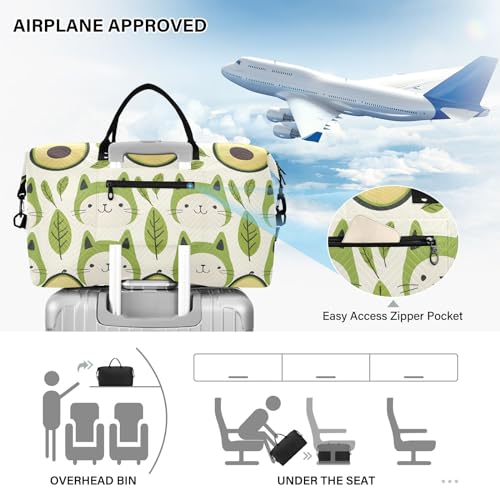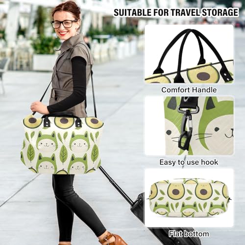 senya Weekender Bags Travel Duffel Gym Bag Cute Cats As Avocados Cartoon Minimalistic Simple Pattern Carry on Overnight Tote Bag with Toiletry Bag for Airplane Travel Trip Gym Yoga 7