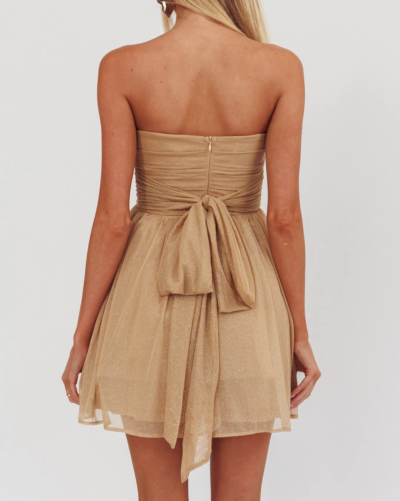 More information about R.Vivimos Womens Sequin Homecoming Dresses 2025 Tube Sleeveless Tie Waist A-Line Sparkly Party Mini Dress Clubwear