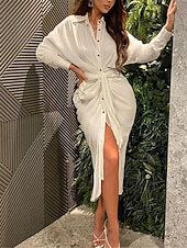 More information about Women's White Dress Shirt Dress Bodycon Maxi long Dress Cocktail Party Sexy Formal Shirt Collar Button Long Sleeve Summer Spring Slim Plain