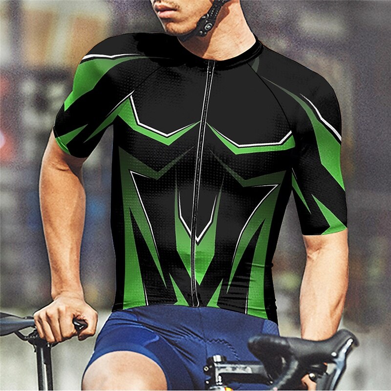More information about Men's Cycling Jersey Geometric Short Sleeve Bike Tee Tshirt Jersey with 3 Rear Pockets Mountain Bike MTB Quick Dry Anatomic Design Wicking Breathable Sports Blue Green Clothing Apparel