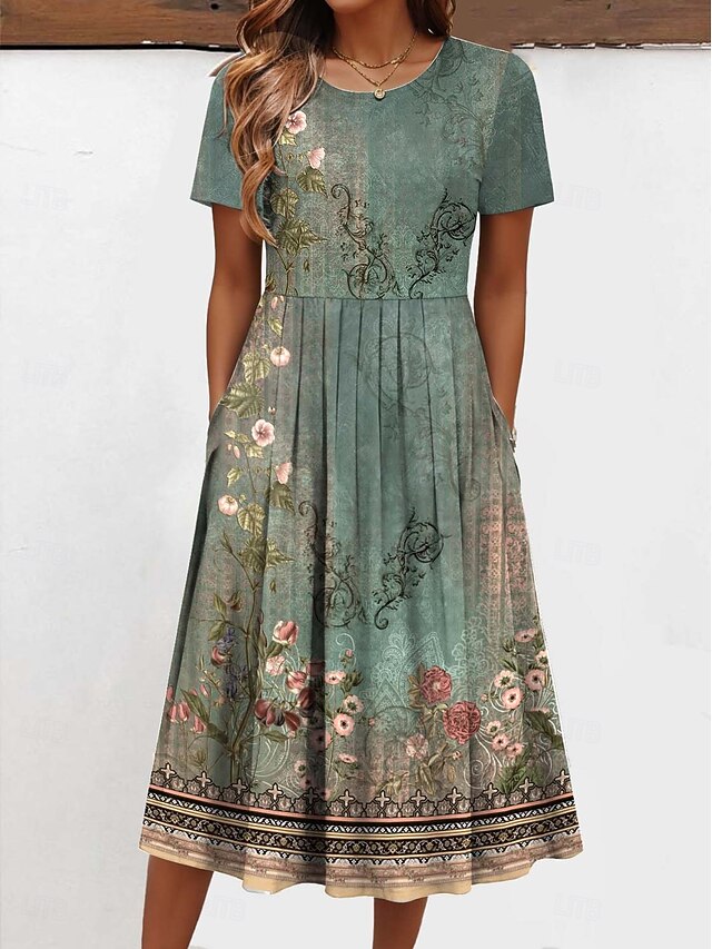 HOT ! Women's Midi Dress T Shirt Dress Tee Dress Vacation Casual Daily Regular Fit Floral Graphic Short Sleeve Crew Neck Light Green Pink Green Beige Summer