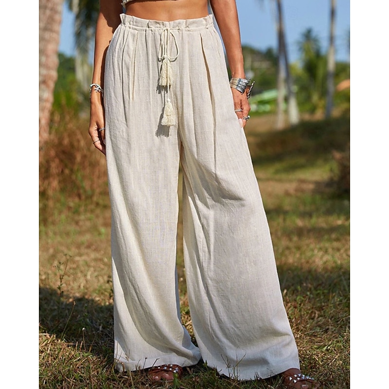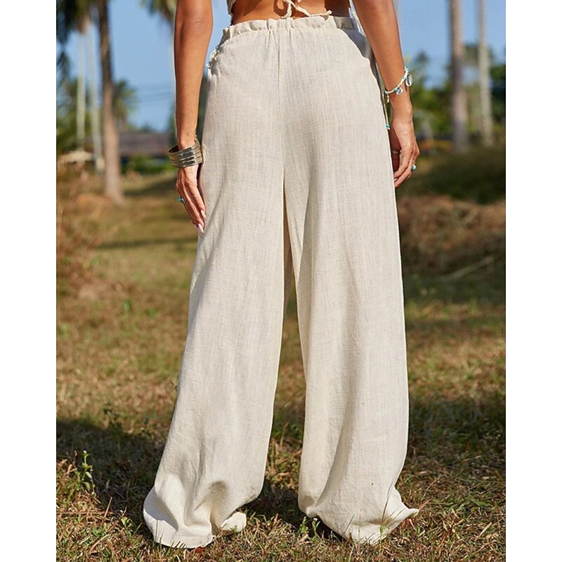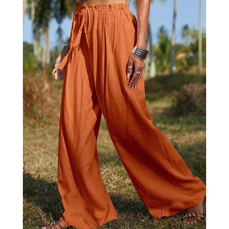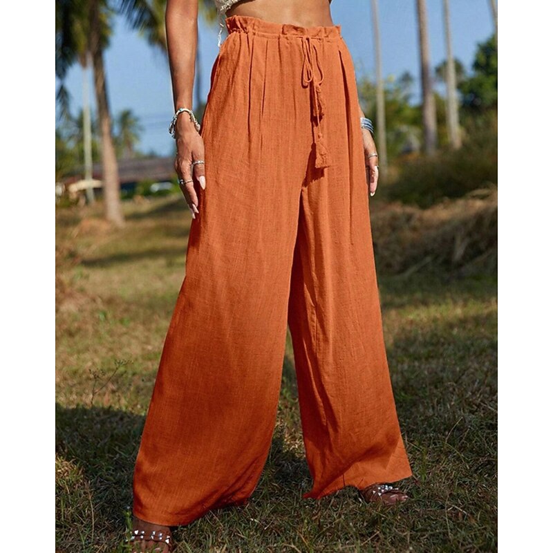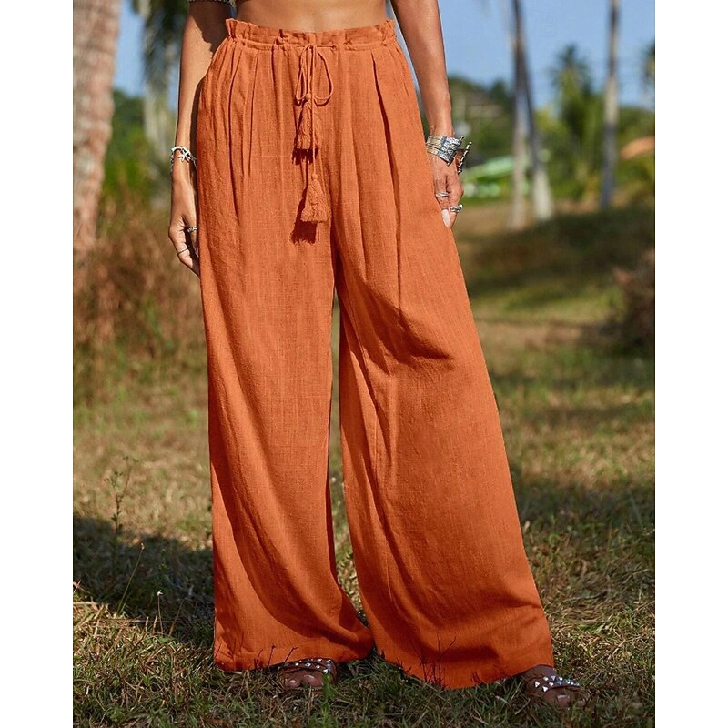 More information about Women's Cotton Linen Pants Slacks Streetwear Casual Full Length Natural Plain Pocket Elastic Drawstring Design Comfy Outdoor Vacation Going out Orange Beige Summer Regular Fit