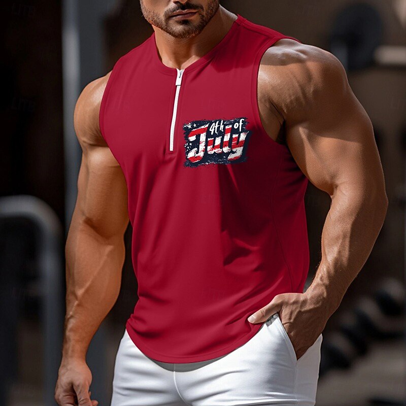 More information about Men's Tank Top Vest Undershirt Sleeveless Shirt Sleeveless Crew Neck Round V Neck Summer Graphic Plain Independence Day Fashion Classic Athleisure Quick Dry Street Casual Sports White Red Blue Top