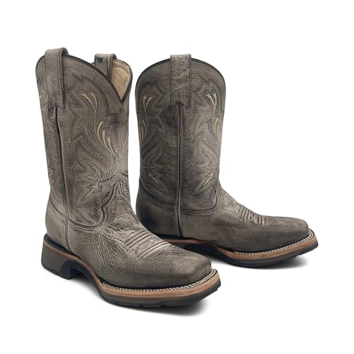 Men’s Leather Western Cowboy Boot Square Toe Mid Calf Rubber Sole 5