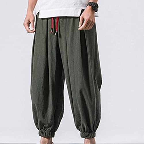 HOT ! Mens Linen Cotton Harem Pants Wide Leg Relaxed Fit Casual Summer Pants Lightweight Elastic Waist Aladdin Hippie Pants