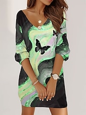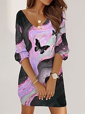 More information about Women's Mini Dress Shift Dress Vacation Casual Daily Holiday Cocktail Party Regular Fit Graphic Animal Butterfly Long Sleeve V Neck Pink Blue Purple Green Summer Spring Fall
