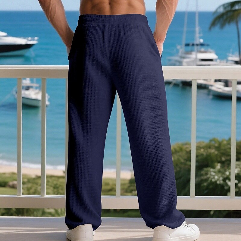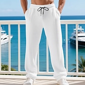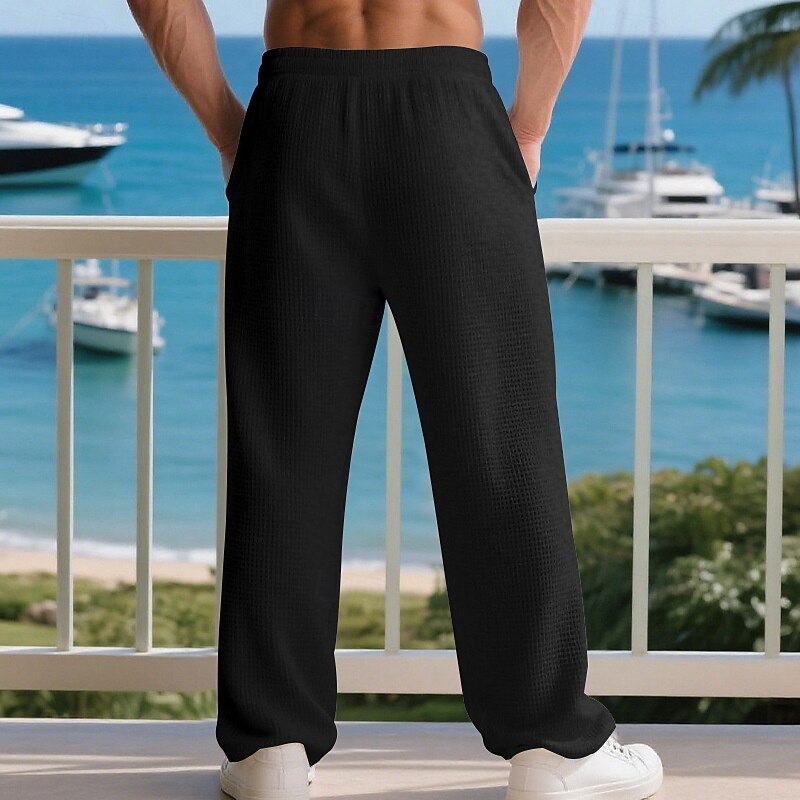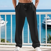 More information about Men's Sweatpants Trousers Straight Leg Sweatpants Waffle Pants Drawstring Pocket Elastic Waist Plain Comfort Sports Outdoor Daily Fashion Casual Black White Micro-elastic