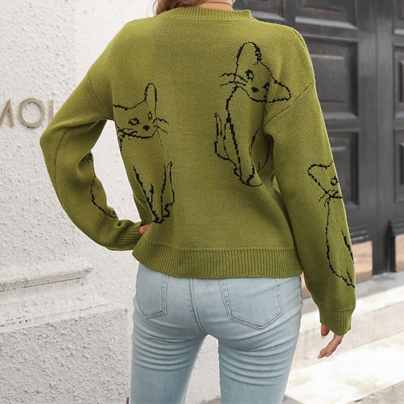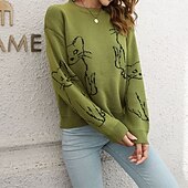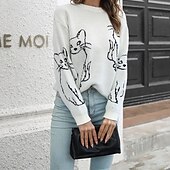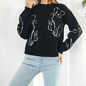 More information about Women's Pullover Casual Animal Chunky Crew Neck Knitted Long Sleeve Regular Tops Knit Daily Holiday Going out Black White Fall Winter