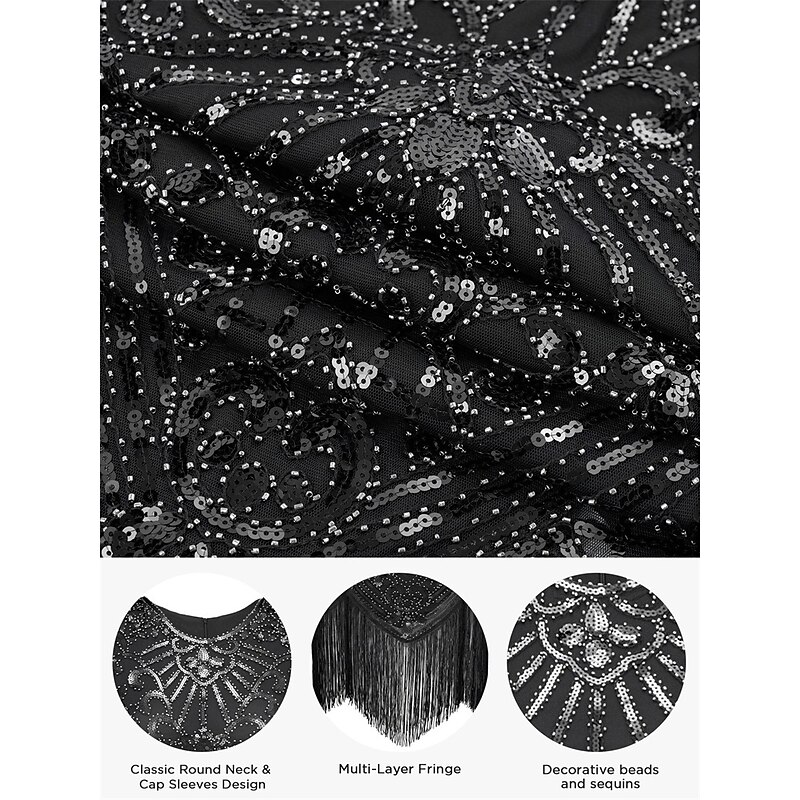 More information about 1920s Cocktail Dress Vintage Dress Midi Flapper Dress Outfits Cocktail Dress The Great Gatsby Flapper Girl Wedding Guest Sequins Feather Fringe Fancy Dress Women's Carnival Costume 7 PCS Christmas