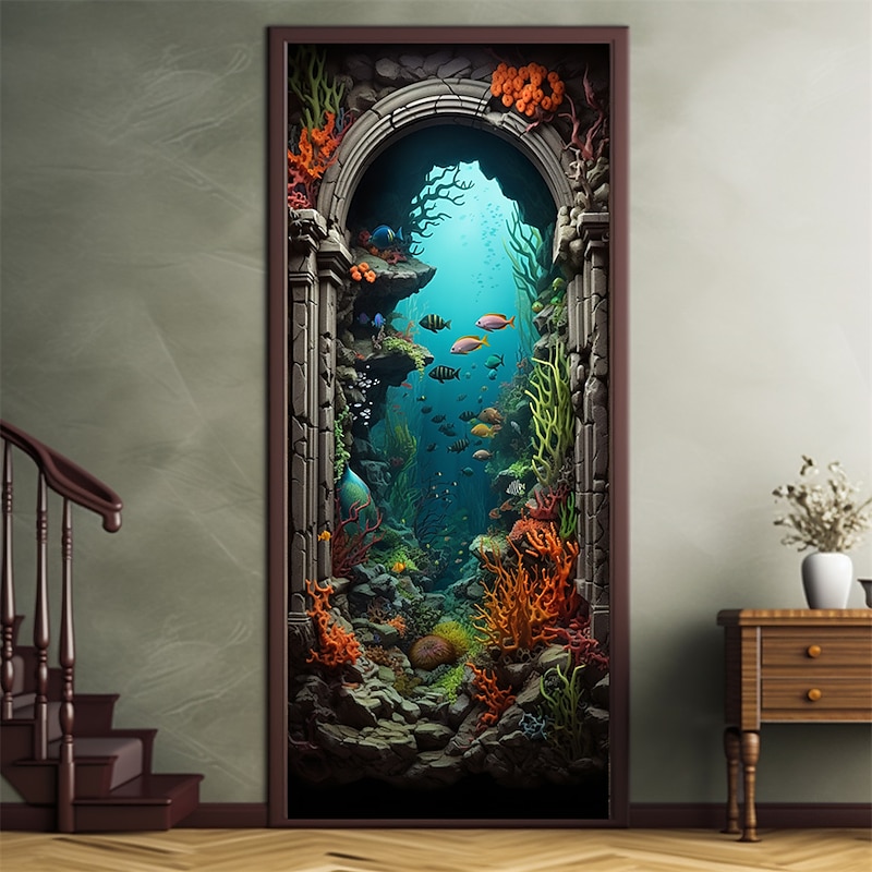 HOT ! Undersea Cave Door Covers Mural Decor Door Tapestry Door Curtain Decoration Backdrop Door Banner Removable for Front Door Indoor Outdoor Home Room Decoration Farmhouse Decor Supplies