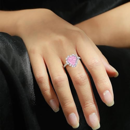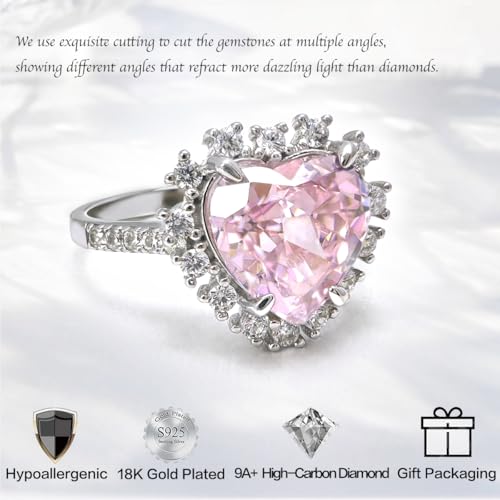 Ring size: 6Material: 925 Sterling Silver plated with 18K White GoldMetal type: White gold and sterling silverGem type: DiamondExquisite Design: The Pink Ring features a stunning 9.22 CT Pink Heart Diamond, measuring 10*10 MM, beautifully set in 925 Sterling Silver plated with thick 18K white gold, making it a standout piece among pink rings for womenSymbol of Love: This pink heart ring is not just a piece of jewelry; it symbolizes love, loyalty, and support, making it an ideal option for cherished moments such as weddings, anniversaries, birthday and Valentine's DayExceptional Craftsmanship: Each pink diamond ring is meticulously crafted with a carefully selected="" and cut diamond to ensure maximum brightness and sparkle, showcasing the extraordinary clarity and vivid pink color of the gemstoneVersatile Option: Suitable for various occasions including Christmas, Thanksgiving, Mother's Day, and birthdays, this pink stone ring makes a ideal choice for someone special in your life, ensuring it will be treasured for years to comeThoughtful Packaging: Your Pink Ring will arrive in an elegant box, adding an extra touch of luxury and making it ready to present as a heartfelt option for any special occasion or celebration Perfect for everyday use. excellent materials and excellent craftsmanship ensure long-lasting durability.
