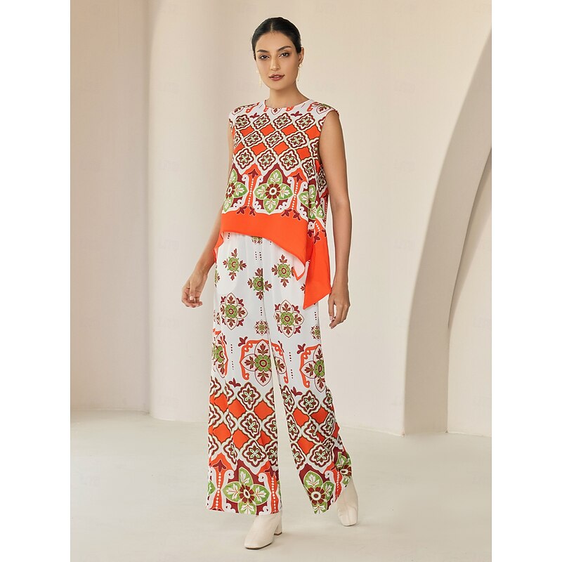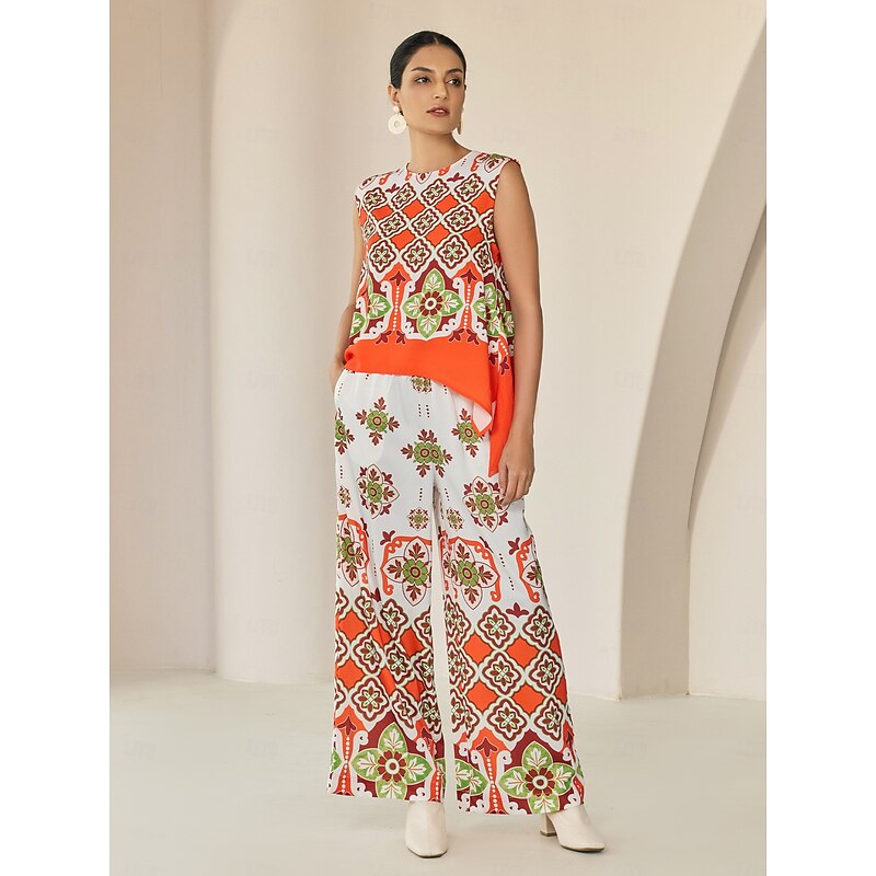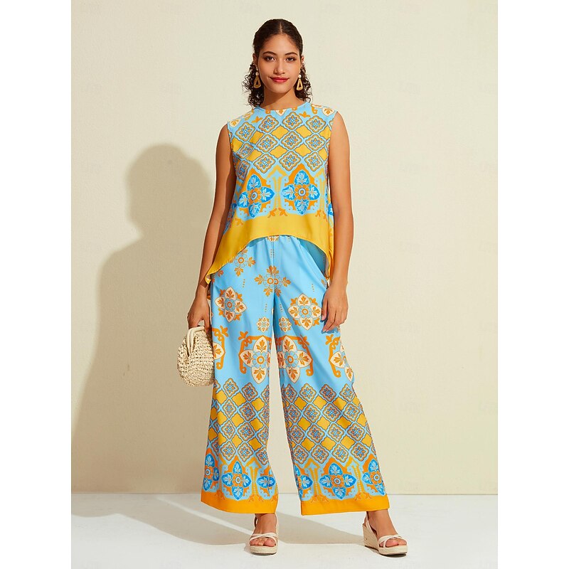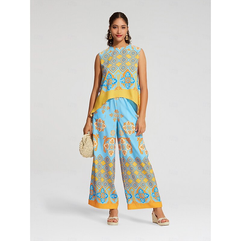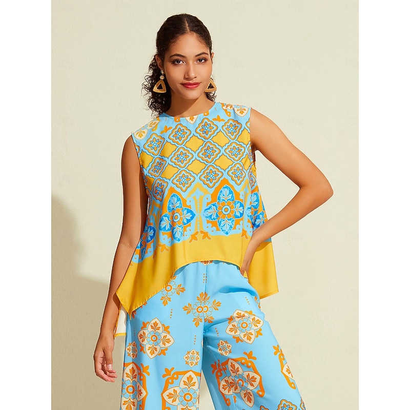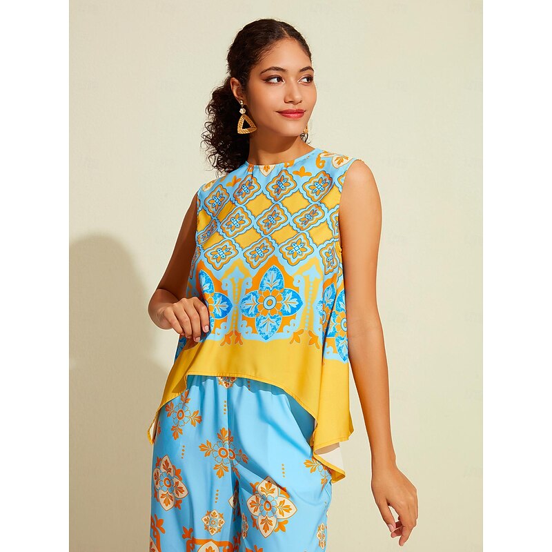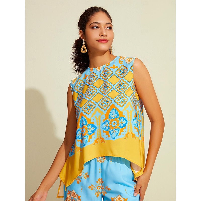 Women's Camisole Tank Top Satin Boho Double Slit Crew Neck Sleeveless Camisole Tank Top 24