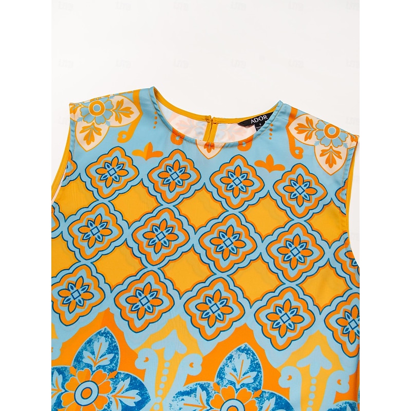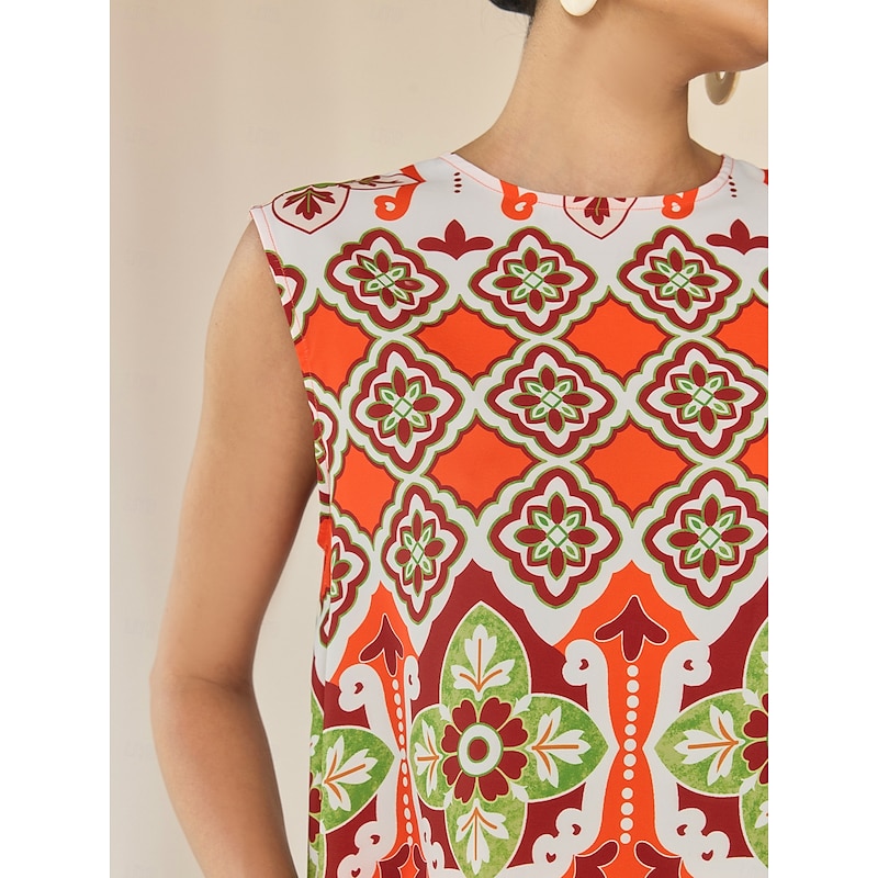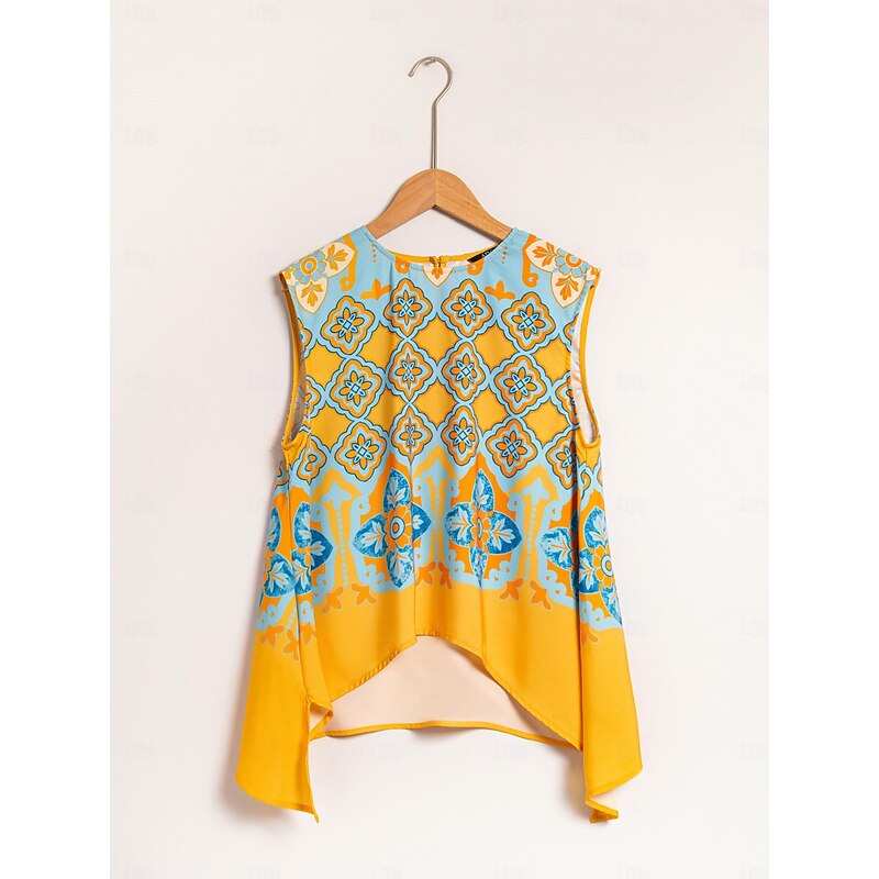 Women's Camisole Tank Top Satin Boho Double Slit Crew Neck Sleeveless Camisole Tank Top 14