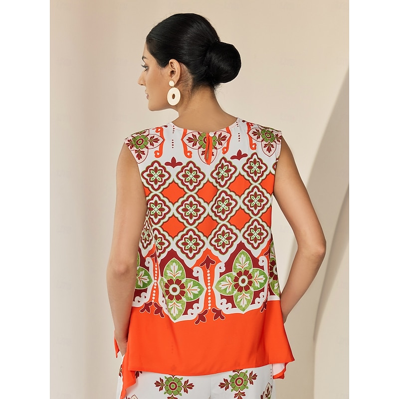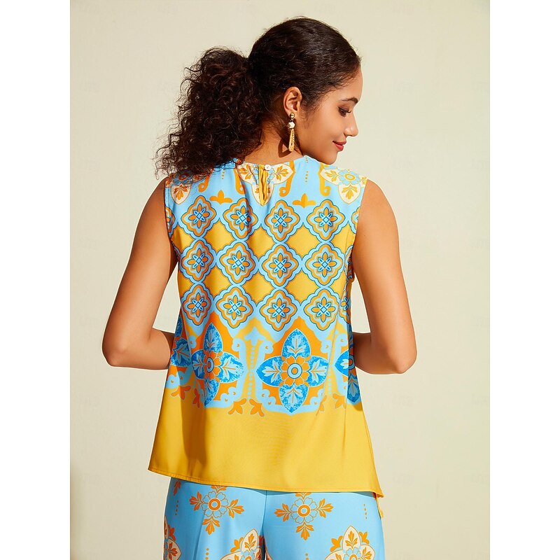 Women's Camisole Tank Top Satin Boho Double Slit Crew Neck Sleeveless Camisole Tank Top 22